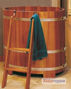 Изготовлена из высококачественного специально обработанного дерева твердых пород, внутри и снаружи покрытая лаком в несколько слоев. Конструкция с двой-ными, входящими друг в друга соединениями, на клею, стянута крепкими сталь-ными обручами на мощных болтах. Комплектуется двумя сидениями, лестницей, сливом для воды и сливом на случай переполнения. Купальная бадья