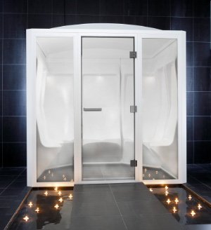 Паровые Elysee изготавливаются из специальной высокотехнологичной вакуумноформованной пластмассы, которая используется для прочных паронепроницае-мых конструкций. Стандартные цвета кабин - белый или мраморный. Поставляются в готовой к установке стенами и крышей со встроенными сидениями и подсветкой над каждым из них. Эксклюзивная дверь сделана из тонированного закаленного безопасного стекла в прочной раме и ручками из натурального анодированного алюминия. Трансформатор для освещения, вентиляция и все необходимое оборудование включено.