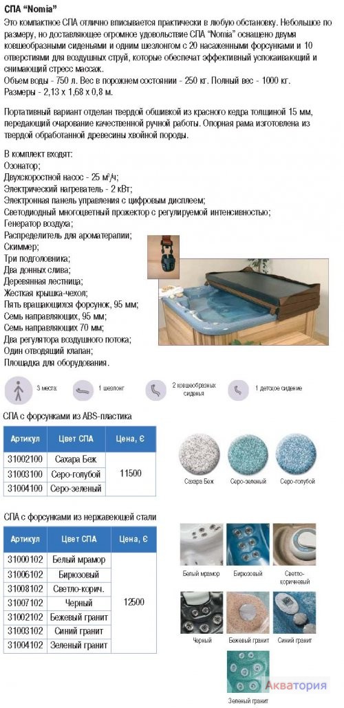 размеру, но доставляющее огромное удовольствие СПА “Nomia” оснащено двумя