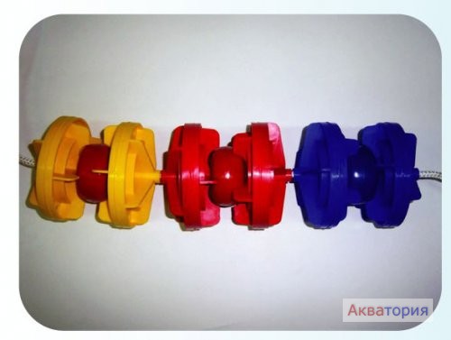 волногасители - д. 125 мм , толщина 64мм; поплавки - д. 72мм, толщина 42мм; 1 талреп нерж.; 1 карабин нерж.; 2 зажима нерж; шнур 8 мм- 51 м