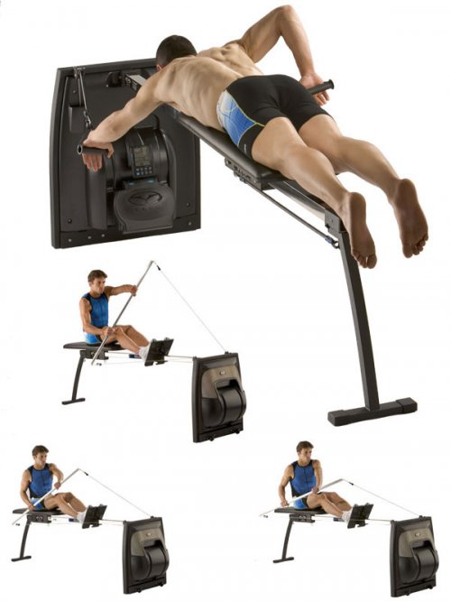 Самая последняя модель тренажеров.Сочетает реальное воспроизведение взмаха с электронным отслеживанием, которое обеспечивает постоянную обратную связь и точное измерение параметров выполнения. Система двигателя обеспечивает гладкое и бесшумное движение. Его особым преимуществом является то, что он воссоздает регулируемое маховиком сопротивление натяжения, которое ощущается так же, как сопротивление воды.На монитор выводятся показатели,отражающие точные измерения: времени, расстояния, темпа, мощности, степени удара, силы правой и левой руки. Он идеально подходит для повышения выносливости, анаэробной силы, восстановления после травм и физиотерапии. Комплект включает в себя монорельс из нержавеющей стали, подвижную скамью анатомической формы на шарнирных опорах,модульные ручки и лопатки, три эластичных шнура, удерживающих скамью в оптимальном положении при возвращении рук в исходную позицию. Испoльзуется в сухих и влажных помещениях.