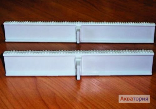 Нужная длина набирается из модулей, которые вставляются один в другой. Замок расположен в центре, что придает гибкость соединению и позволяет применять решетки как для прямых участков, так и для изгибов, а также гасить расширение, вызванное тепловым воздействием.