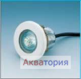 Светильник ø96, резьба 2’’, изготовлен из хромированной латуни, накладка из белого ABS-пластика. В комплекте с кабелем 3х1 мм (1,5 м) и дихроичной лампой 50 Вт /12 В.