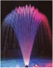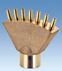 Создает веерную картину. В основном используется в фонтанах средней величины в качестве периферийного устройства для поддержки других эффектов. Насадка не зависит от уровня воды. Хороший вид достигается правильным подбором насоса. Конструкция из бронзы.