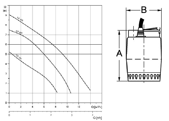 Одноступенчатые погружные блочные агрегаты с вертикальным нагнетательным внутренним патрубком 1 1/4” и сеткой в основании. Все детали, находящиеся в контакте с рабочей средой, выполнены из хромоникелевой нержавеющей стали. Электродвигатель (IP 68) 230 В, 50 Гц, со штекером Schuko. Частота вращения 2900 об/мин. Полуоткрытое рабочее колесо имеет свободный проход 10 мм и обеспечивает перекачивание грунтовых, дождевых и очищенных сточных вод. Внешний кожух обеспечивает постоянное охлаждение электродвигателя перекачиваемой жидкостью. Максимальная температура перекачиваемой жидкости: + 50°С, кратковременно (2 мин.) + 70°С. Подача до 12 м3/ч, напор до 9 м, глубина погружения до 10 м. В комплекте с поплавком.