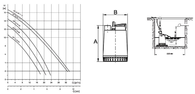 Одноступенчатые погружные блочные агрегаты с вертикальным напорным внутренним патрубком 1 1/2” и фильтром в основании. Электродвигатель (IP 68) 230 В, 50 Гц. Все детали, находящиеся в контакте с рабочей средой, выполнены из нержавеющей стали. Диаметр условного свободного прохода рабочего колеса 12 мм, частота вращения 2900 об/мин. Температура перекачиваемой среды от 0 до 50°С, кратковременно до + 70°С. Подача до 32 м3/ч, напор до 16 м, глубина погружения до 10 м. В комплекте с поплавком.