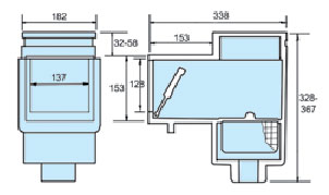 Скиммеры забирают воду с поверхности бассейна и собирают плавающий мусор. К скиммеру можно подсоединить подводный пылесос. Рекомендуется устанавливать один скиммер со стандартным заборником на каждые 25 м2 площади зеркала воды, а с широким на каждые 35 м2. Форсунки предназначены для подачи в бассейн воды, прошедшей фильтрацию. Вращающееся сопло форсунки позволяет регулировать направление водяной струи и тем самым добиваться лучшего перемешивания воды в бассейне. Рекомендуемый поток через форсунки составляет 5 - 6 м3/ч.