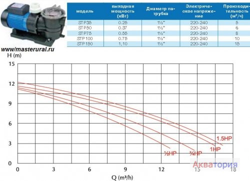 Насосы для бассейна STP75 8м3/ч 220в 0,55кВт