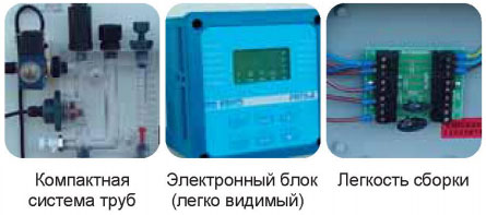 Для измерения и контроля рН, Rx и хлора (700x600) Измерительные приборы - РС95 и PR75; caмooчищaющийcя амперометрический элемент (Pt-Cu); датчики рН и Rx; Система самокалибровки и система контроля работы датчиков(рН and Rx); фильтр (промываемый при загрязнении); электромагнитный клапан; буферные растворы и комплект DPD |
