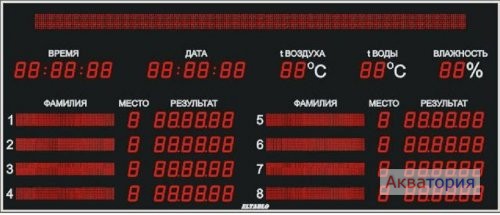Табло для бассейна №3. Спортивное табло, модель ТС-100x74_РБС-080-64х8х8_100-224х8btx2_влажность
