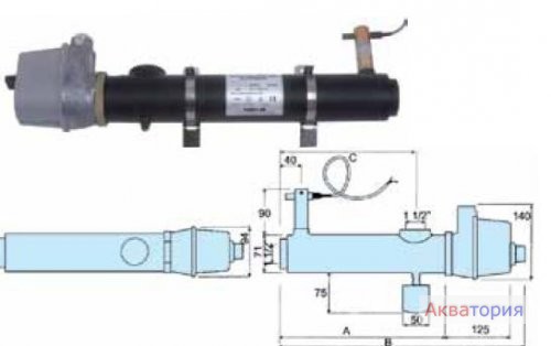 В комплект поставки входят тэн, термостат от 0 до 45°С, защита от перегрева до 60°С, датчик потока, на-