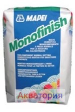 MONOFINISH - порошковый, высокопрочный, однокомпонентный цемент основанный раствор с фракционными наполнителями, специальными добавками и синтетическими полимерами, произведенный по рецептуре, разработанной в Научно- исследовательской лаборатории MAPEI. При смешивании с водой MONOFINISH преобразуется в простую в применении жидкую пасту, которая легко наносится даже на вертикальные поверхности в толщинах до 2 - 3 мм за один слой. Из-за высокого содержания синтетических смол, MONOFINISH имеет превосходное сцепление с бетонными поверхностями и после отверждения становится надежной защитой.