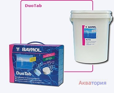 Байроклар дуо таб обеспечивает полный уход воды в виде таблеток: дезинфекция, водоросли профилактики (пени), и сделать чистую воду. Это концентрированной форме таблетка содержит две компоненты: белый Байроклар вкладка + синий , байрол плюс вкладки. дуо таб таблетка обеспечивает простой свободного дозировку. Один дуо таб будет хватает на 8 дней 30m ³ воды.