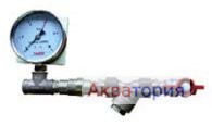 Монтажный комплект 3/8" для регулировки давления воды, состоящий из манометра 0-10 бар, обратного клапана, фильтра тонкой очистки и запорного вентиля