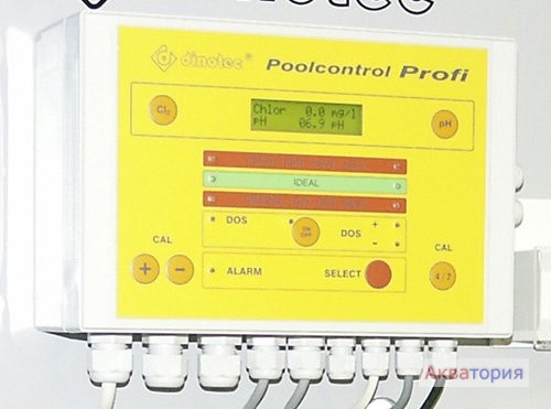 Изм.- рег. прибор для pH и свободного хлора с микропроцессор. управлением; исполнение: самоопт. регулятор; со свтд. дисплеем и доп. светодиодами, селект. функцией тревоги, диагностич. и сервис. показаниями. Варианты характеристик регулирования: пропорционально длины импульса, пропорционально частоты импульса или on/off. С автоматикой задержки включения, контролем изм. воды и отключением доз. насосов. С электронной системой очистки электрода измерения свободного хлора.