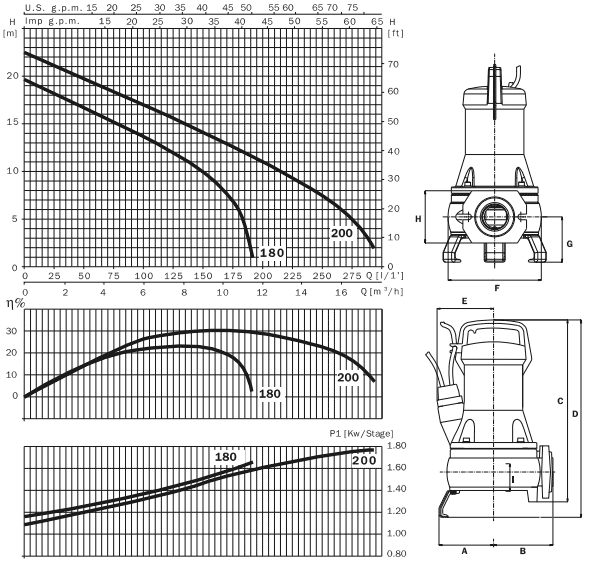 Погружные одноступенчатые насосы c горизонтально расположенным нагнетательным патрубком и режущим механизмом Draincor 200