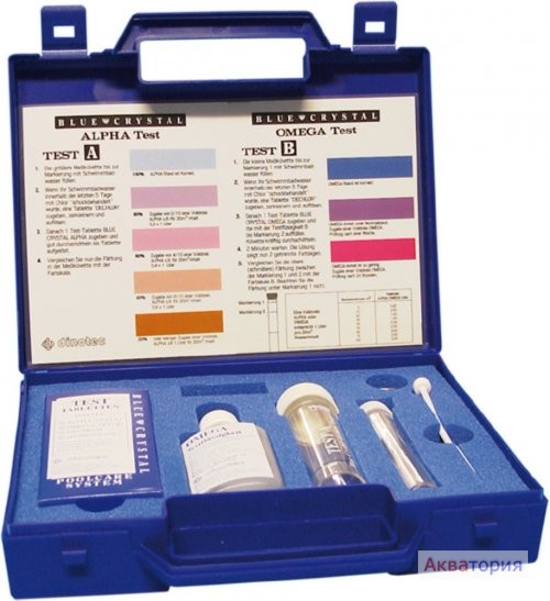 Набор реагентов для быстрого измерения и контроля за значением pH и концентрацией продукта NOVA CRYSTAL Alpha и NOVA CRYSTAL Omega в прбах воды. Состоит из 30 таблеток для pH -, 20 таблеток для определения Alpha, 30 таблеток для определения Omega и 20 таблеток для дехлорации).