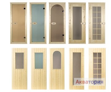 Стеклянные двери придают обстановке яркость, а помещение выглядит просторнее. Они также безопасны, и позволяют родителям присматривать за детьми в соседней комнате. Стеклянные двери не требуют ухода в течение десятилетий. Предлагаются два стандартных модели стеклянных дверей, в ассортименте Harvia также есть два вида деревянных дверей со стеклянным проемом. Двери, представленные на фотографиях, предназначены для саун серий Variant и Country.