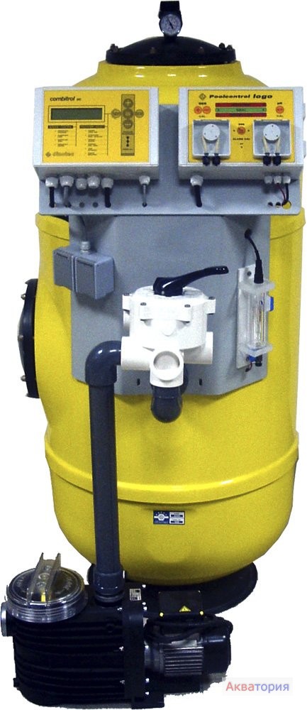 Изм.- рег. и доз. прибор logo visual или domo с принадлежностями. Устр-во управления фильтрацией, обр. промывкой и нагревом combitrol SLIMATIC с монт. комплектом теплообменника TITANEX 40 kW (на выбор). Прибор дозации коагулянта Easyfloc mono, монт. комплект slimline с приспособлением.