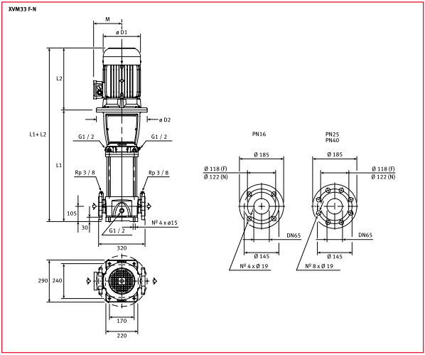 Насос XVM - нормальновсасывающий вертикальный, многоступенчатый насос, оснащенный стандартным электродвигателем