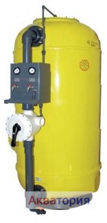 Фильтровальная емкость из высококачественного, усиленного стекловолокном полиэстера, изготовленная современным методом ламинирования; с дюзовым дном, отверстием для загрузки и очистки, внутренней трубной обвязкой из абсолютно устойчивой к коррозии пластмассы с заливной воронкой, устройством опорожнения и устройством удаления воздуха вручную.