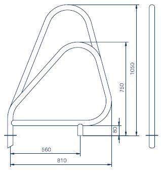 Модель с фланцами (пара), Из полированных труб из нержавеющей стали AISI-316 ∅ 43 мм. Поручни поставляются парой, комплектно с фиксирующими пластинами, уплотнениями, шурупами и дюбелями
