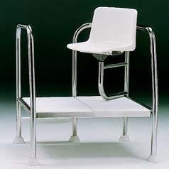Изготовлено из труб ∅ 43 мм из нержавеющей стали AISI-304. Ступени, платформа, кресло сделаны из полипропиленового стекловолокна. Большая платформа и стул, вращающийся на 90° для увеличения угла обзора. Идеален для детских бассейнов, аквапарков или мелких мест общественных бассейнов.
