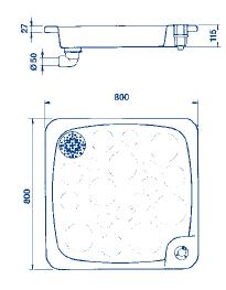 Размеры 80 см x 90 см. С регулируемым донным дренажом. Дренажная решетка ∅130 мм, подвод ∅ 50 мм. Поддон из полиэстера и стекловолокна