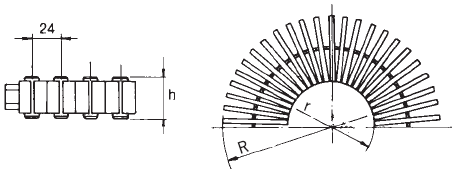 Полипропилен. Соединяются вместе, образуя центральный элемент, дающий определенную гибкость решеткам (45 элементов на метр)