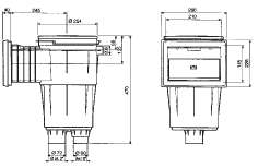 Открытые части скиммера изготовлены из материала стойкого к УФ-лучам. Рекомендуемый поток воды 7.500 л/ч. атвором скиммера регулируется забор верхнего слоя воды. Нижний всасывающийся патрубок: внутреннее соединение 1 1/2’’, внешнее соединение 2’’. Патрубок ø 32 для дополнительного дренажа. Корзина скиммера крепится с помощью штыковой муфты. Крышка снабжена пружинным фиксатором. Высота крышки регулируется с помощью дополнительных вставок. Скиммеры для бассейна