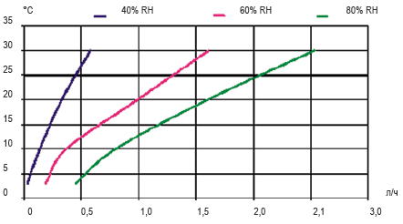Автоматическое поддержание требуемого уровня влажности (стандартная уставка ~ 60% RH) обеспечивается с помощью встроенного