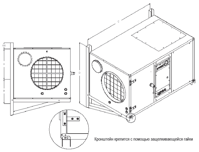 Для настенного или напольного монтажа, настенного монтажа в отдельном техническом помещении. Съемный фильтр на воздухозаборном патрубке (∅ 400 мм).Возможность подмеса свежего воздуха (∅ патрубка = 160 мм).Поршневой компрессор (CDP 125, CDP 165).