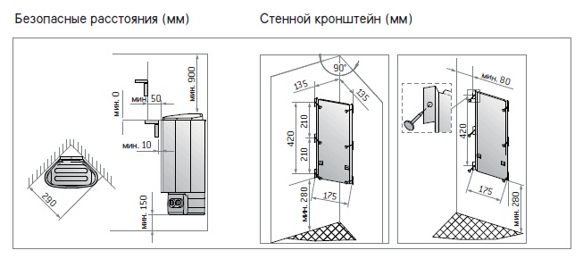 Рекомендуемый размер парильни, мин.-макс, м3 |