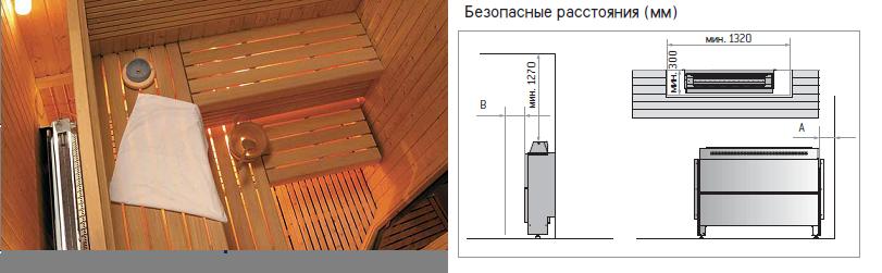 Размеры каменки: ширина 1175 мм, глубина 290 мм и высота 830 мм, вес 33 кг.