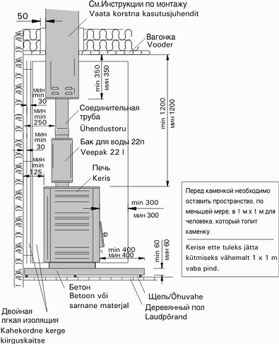 Рекомендуемый объем парильни для этой каменки должен быть в пределах от 8 до 20 м3, максимальная масса камней – 50 кг.