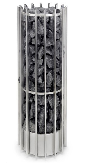 Печь HELO Rocher (фр. скала, утес), вмещает более 100 кг. камней. Ее особенностью является то, что большое количество камней равномерно излучает мягкое тепло в парной, позволяя сделать его более равномерным по высоте. Напольные печи