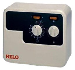 HELO OK 33 PS-3 (400В, 3-фазное напряжение) – традиционный пульт управления, используемый с печами SKLE, 9.0 – 15.0 кВт. Функции: регулировка температуры, установка времени до включения и времени работы (шкалы A и B дают возможность выбрать либо 8 часов времени до включения + 4 часа работы, либо 12 часов работы), выключатель освещения. OK 33 PS – 3 устанавливается на стене снаружи парной. Размеры 200x240x80 мм. (В×Ш×Г)