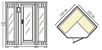 Размеры: 132 х 132 х 195 см (Г х Ш х В).