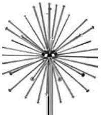 Сфера, состоящая из взаимосвязанных водяных струй, которая становится еще выразительней при использовании подсветки. Материал - нержавеющая сталь. Головные части насадок легко снимаются и чистятся. Диаметр сферы, 100 см Кол-во лучей 37