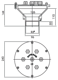 Выводы кабеля предназначены для обеспечения герметичности прохода кабелей сквозь чашу фонтана. Они являются закладными деталями, то есть устанавливаются в дно или в борт на стадии проведения бетонных работ. Прокладка кабеля производится в трубе. Все кабельные вводы соединяются с трубой при помощи внутренней или наружной резьбы. Рассчитаны на вывод от 1 до 24 кабелей. Используются уплотнения кабелей для двух типов диаметров. Закладные детали выполненные из бронзы серии Stub-Ups имеют PG16 и PG21. Уплотнение PG16 рассчитано на кабель диаметром до 9 мм, тип PG21 рассчитан на кабель диаметром от 9 до 15 мм. Кабельные выводы из нержавеющей стали комплектуются муфтами для кабеля диаметром 7-10 мм и 8-13 мм. |