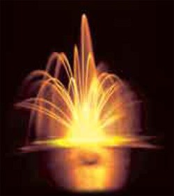 Водная картина Buckingham состоит из 5 групп струй в форме пирамиды. Вертикальный поток окружен 4 уровнями, каждый из которых состоит из 6 потоков с постепенно уменьшающейся высотой и увеличивающимся диаметром. Освещение, особенно многоцветное, делает эту картину необычайно зрелищной. Плавающий фонтан поставляется только в конфигурации горизонтального расположения насоса.