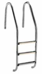 Лестницы для стационарных бассейнов. Поручни изготовлены из нержавеющей стали диаметром 43 мм. Ступеньки из нержавеющей стали и пластика. Удобная конструкция предотвращает скольжение и тем самым обеспечивает безопасность. Поставляется с анкерными креплениями и заземлением.