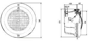 Поставляется в комплекте с нишей и лампой 300 Вт / 12 В, эластичными прокладками, фланцами и винтами.