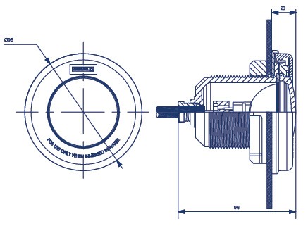 гайка, облицовочный обод из ABS-пластика. Галогенная лампа 50Вт, 12В с алюминизированным отражателем. Без ниши.