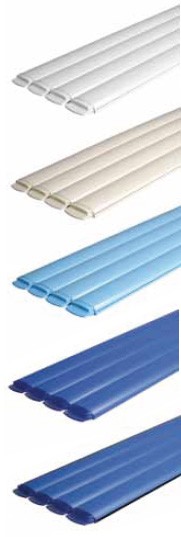 Для лучшей сочетаемости покрытия с ландшафтом вы можете выбрать одну из различных моделей планок. Белая, песочная, непрозрачная синяя, серая, прозрачная голубая* и солнечная*. Планки из прозрачного белого материала и солярные могут использоваться только в северной Европе и в районах с низким уровнем солнечного излучения.