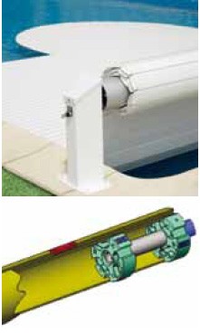 - Внутритрубный двигатель 24В, управляемый концевым выключателем или 12В в зависимости от ширины бассейна.