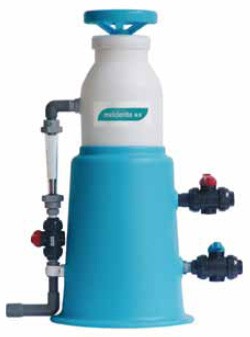 Гарантированное качество обработки воды может быть достигнуто только при условии точного соблюдения дозировки реагентов. Поэтому компанией Melspring был разработан специальный хлоратор, работающий только с медленнорастворимым гипохлоритом кальция Melchlorite N.X. Хлоратор имеет компактные размеры и прост в обслуживании, а отсутствие в конструкции подвижных элементов делает его надежным и долговечным устройством.
