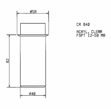 Корпус светильника CR-840 алюминиевый, освещающая часть из акрила. Диаметр монтажного отверстия светильника 40 мм. Диаметр фланца корпуса светильника 50 мм, общая длина 82 мм.