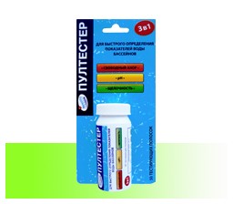 Назначение: быстрое определение рН, свободного хлора и щелочности в воде бассейнов. 50 тестирующих полосок.