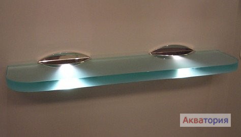 Светящаяся стеклянная полочка шириной 500 мм очень удобна для расположения небольших предметов и создает, одновременно, уют в ванной комнате.